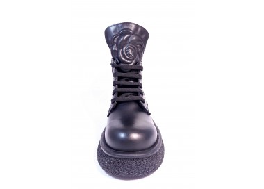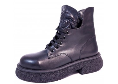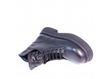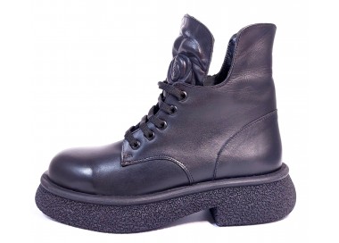 Sieviešu puszābaki ar šņorēm un rāvējslēdzēju. Virspuses materiāls - dabīgā āda. Iekšējā odere - tekstils. Papēža augstums - 40 mm. Ideāli derēs sievietei ar šauru pēdu. Apavu priekšpusē - ziedu prints.