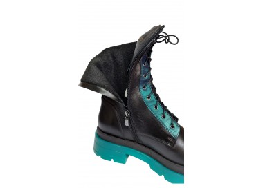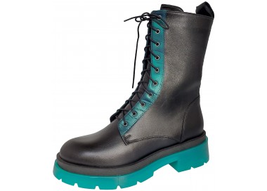 Sieviešu puszābaki ar šņorēm un rāvējslēdzēju. Virspuses materiāls - dabīgā āda. Iekšējā odere - filcs. Papēža augstums - 50 mm.