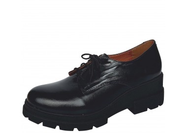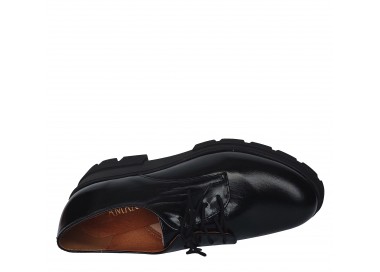 Sieviešu slēgtas kurpes. Virspuses materiāls un iekšējā odere - dabīgā āda. Papēža augstums - 55 mm. Pēdu fiksē šņores.