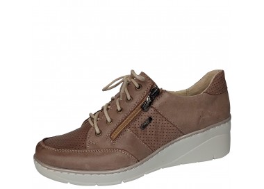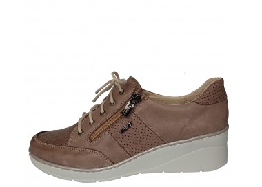Slēgtas, sieviešu kurpes. Virspuses materiāls - dabīgā āda. Iekšējā odere - dabīgā āda. Zoles augstums - 50 mm. Rāvējslēdzēja aizdare, bet pirms tam ar aukliņām pieregulē pēdas velves pacēlumam. Nošūti, mīksti un ērti.