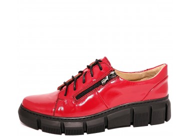 Sieviešu slēgtas kurpes. Virspuses materiāls - lakāda. Iekšējā odere - dabīgā āda. Platformas augstums - 40 mm. Rāvējslēdzēja aizdare, bet pirms tam ar aukliņām pieregulē pēdas velves pacēlumam. Nošūti. Mīksti un ērti, koša krāsa.