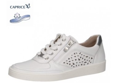 Caprice firmas krosenes ar perforāciju. Virspuses materiāls - dabīgā āda. Iekšējā odere – tekstils, iekšzole - dabīgā āda. Airmotion iekšzolē ir līdz pat 300 puslodes, kas nodrošina labāku gaisa cirkulāciju un triecienu amortizāciju. Līdz ar to samazinās spiediens uz mugurkaulu, mazinās nogurums un apavos saglabājas patīkams mikroklimats. Zoles augstums - 25 mm. Rāvējslēdzēja aizdare, bet pirms tam ar aukliņām pieregulē pēdas velves pacēlumam.