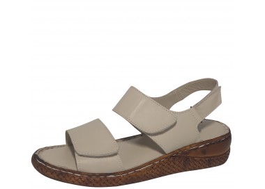 Sieviešu vasaras sandales. Virspuses materiāls - dabīgā āda. Iekšējā odere – dabīgā āda. Mīksta iekšzole. Zoles augstums - 40 mm. Nošūti, pēdu fiksē 2 lipekļa aizdares.