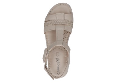 Sieviešu sandales no Caprice firmas. Virspuses materiāls un iekšējā odere – dabīgā āda. Nošūti. Zoles augstums – 30 mm. Sandales ir ļoti mīkstas, ērtas un vieglas. Divas līpslēdzēja aizdares.