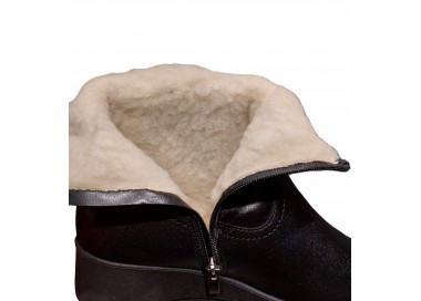 Sieviešu ziemas puszābaki. Virspuses materiāls - dabīgā āda. Iekšējā odere - vilna. Platformas augstums - 40 mm. Derēs platākai pēdai.