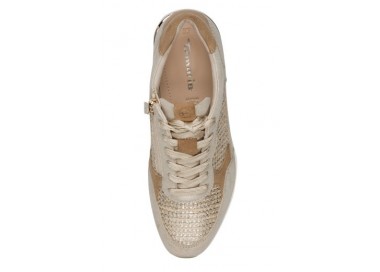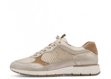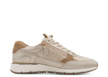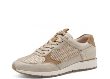 Tamaris brīvā laika apavi. Virspuses materiāls - dabīgā āda/tekstils. Iekšpusē kurpes sastāv no tekstila, iekšzole - dabīgā āda. Mīksta iekšzole pielāgojas pēdas formai. Kurpes ir ļoti mīkstas un ērtas. Zoles augstums - 30 mm. Rāvējslēdzēja aizdare, bet pirms tam ar aukliņām pieregulē pēdas velves pacēlumam.