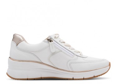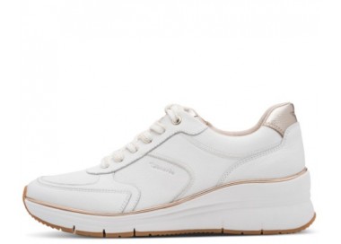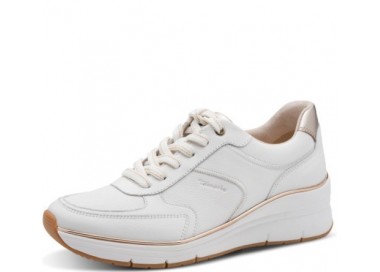Tamaris brīvā laika apavi. Virspuses materiāls - dabīgā āda/sintētika. Iekšpusē kurpes sastāv no tekstila, iekšzole - dabīgā āda. Mīksta iekšzole pielāgojas pēdas formai. Kurpes ir ļoti mīkstas un ērtas. Zoles augstums - 45 mm. Rāvējslēdzēja aizdare, bet pirms tam ar aukliņām pieregulē pēdas velves pacēlumam.