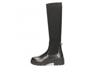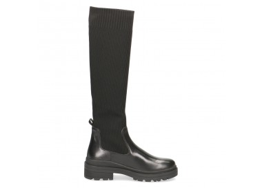 Sieviešu zābaki melnā krāsā no dabīgās ādas un tekstila. Iekšpusē sastāv no auduma un sintētikas, papēža augstums 45 mm. Modelis derēs arī platai pēdai. Gumijas dēļ zābaku var valkāt ar jebkādu stulma platumu. Izmantota onAIR iekšzoles tehnoloģija. OnAir izņemama zole pielāgojas pēdas anatomiskajām īpašībām, nodrošinot labāku gaisa apmaiņu, kas savukārt zābakos ļauj paturēt ideālu klimatu visa dienas garumā. Iekšzole darbojas kā amotrizators, samazinot mugurkaula un lovītavu slodzi.