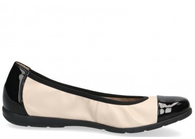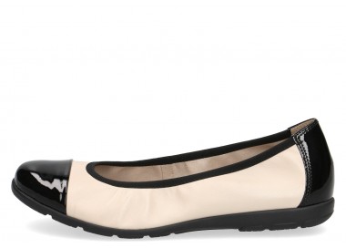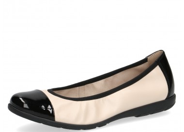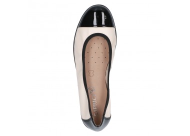 Vasaras balerīnas smilškrāsā un kremkrāsā no Caprice firmas. Apaļš purngals. Virspuses materiāls - dabīgā āda. Iekšējā odere – āda/sintētika, iekšzole - dabīgā āda. Modelim ir Caprice onAir iekšole, kas darbojas kā amortizators un klimata kontrole.