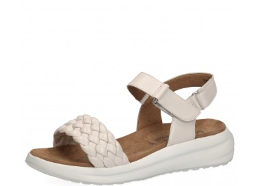 Basenes no Caprice firmas gaiši bēšā krāsā. Apaviem ir palielināts platums, derēs sievietēm ar platu pēdu. Virspuses materiāls - dabīgā āda. Iekšējā odere – dabīgā āda/tekstils. Iekšzole ir izgatavota no tekstila, ļoti mīksta un gaisa caurlaidīga, tāpēc kāja valkāšanas laikā neslīdēs. Pēdu fiksē divas līpslēdzēja aizdares. Zoles augstums – 40 mm. Kurpes no jaunas Climotion līnijas. Iekšzole no Climotion līnijas sastāv no gaisa kameram, kas atgādina bišu šūnas, tas ļauj gaisam vienmērīgi cirkulēt pa visu iekšzoles virsmu. Materiāls ir ļoti mīkst un elastīgs, ar “atmiņas efektu” tas viss nodrošina unikālas sajūtas apavu valkāšanas laikā. Zole amortizē pēdu valkāšanas laikā, samazinot slodzi uz mugurkaulu. Reljefa zīmējums uz zoles virsmas samazina slīdēšanu.