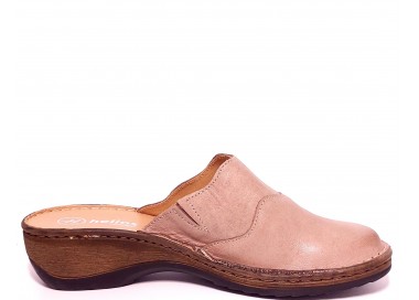 Sieviešu sabo apavi. Virspuses materiāls un iekšējā odere – dabīgā āda. Platformas augstums – 40 mm, nošūti. Gumija ļauj regulēt pēdas pacēlumu.