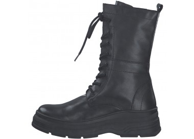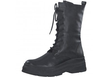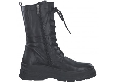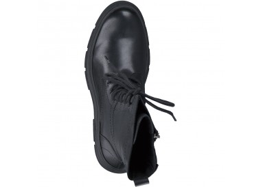 Sieviešu Marco Tozzi garie puszābaki melnā krāsā no dabīgās ādas. Pēdu fiksē rāvējslēdzējs un šņores. Iekšpusē sastāv no auduma, zoles augstums 55 mm. Ērta iekšzole «feel me» dublē pēdas formu, padarot apavu valkāšanu ērtu katru dienu.