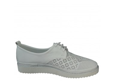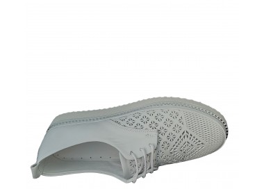 Женские летние туфли. Внешняя и внутренняя отделка - натуральная кожа. Высота подошвы – 20 мм. Стопу фиксирует шнуровка. Туфли очень легкие и мягкие, перфорация способствует улучшенному воздухообмену.