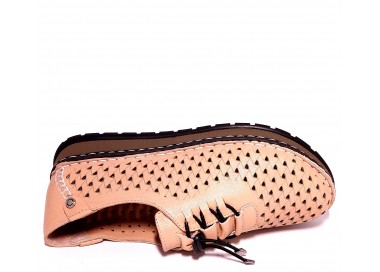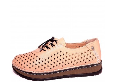 Женские летние туфли. Внешняя и внутренняя отделка - натуральная кожа. Высота подошвы - 35 мм. Прошиты, с перфорацией. Стопу фиксирует резинка - шнуровка.