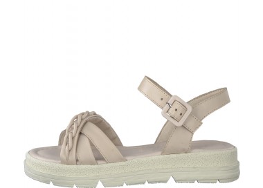 Босоножки Marco Tozzi. Внешняя отделка - натуральная кожа. Внутренняя отделка – натуральная кожа. Посадку стопы фиксирует застежка, которая позволяет выбрать нужную полноту. Стелька очень мягкая. Высота подошвы – 35 мм.