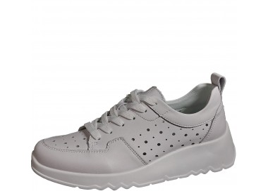 Женские кроссовки на шнуровке. Внешняя отделка - натуральная кожа. Внутренняя отделка – натуральная кожа/синтетика. Высота подошвы – 45 мм. С перфорацией, идеальны на летнее время.