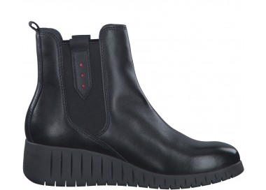 Чёрные женские ботинки Marco Tozzi. Внешняя отделка - натуральная кожа. Внутренняя часть ботинок состоит из натуральной кожи и текстиля, стелька - натуральная кожа, можно выбрать. Высота танкетки 50 мм. Ботинки очень мягкие, подошва эластичная.