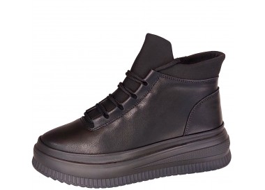 Женские ботинки. Внешняя отделка - натуральная кожа. Внутренняя отделка - текстиль. Стопу фиксирует молния, шнуровка позволяет выбрать нужную полноту подъема. Высота подошвы - 48 мм. Сьемная стелька.