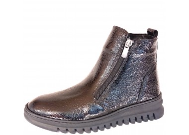 Женские ботинки. Внешняя отделка - лаковая кожа. Внутренняя отделка - текстиль. Две молнии. Высота подошвы - 40 мм. Мягкая сьемная стелька. Прошиты.