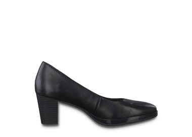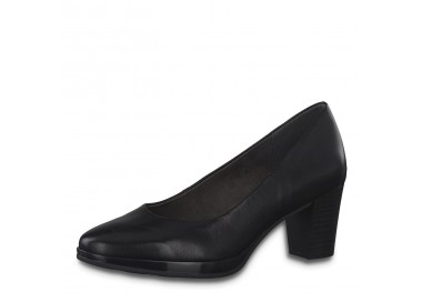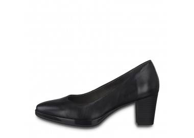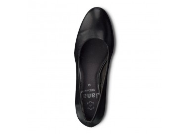 Черные, классические, кожаные туфли марки Jana. Внутренняя часть туфель состоит из текстиля, стелька из кожи, высота каблука - 60 мм. Модель подойдет для обладательниц полных стоп.