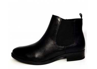 Чёрные женские ботинки c наружной отделкой из натуральной кожи. Внутренняя часть ботинок состоит из ткани, высота каблука 20 мм. Cтелька OnAir способствует улучшенному воздухообмену, а упругие полусферы снижают давление на стопу и снимают симптомы усталости.