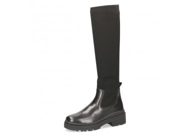 Чёрные женские сапоги выполнены из натуральной кожи и текстиля. Внутренняя часть состоит из текстиля и синтетики, высота каблука 45 мм. Модель подойдет на полную стопу. За счет резинки модель может подойти для разной полноты голенищ. Использована технология onAIR – стелька, адаптирующаяся под анатомические особенности стопы, обеспечивающая оптимальную циркуляцию воздуха, создавая идеальные климатические условия и снимая нагрузку с позвоночника и суставов.