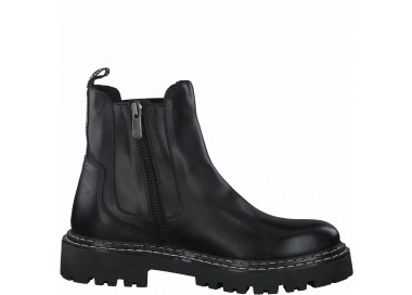 Чёрные женские ботинки Marco Tozzi c наружной отделкой из натуральной кожи на молнии. Внутренняя часть ботинок состоит из ткани, высота каблука 40 мм. Удобная анатомическая стелька «feel me» повторяет естественные изгибы стопы и обеспечивает ноге правильное положение во время ходьбы.