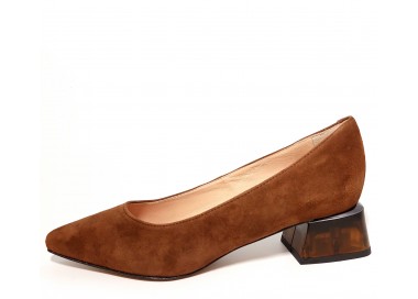 Женские туфли коричневого цвета. Внешняя отделка - замша. Внутренняя отделка – натуральная кожа. Высота каблука - 35 мм, нос острый, каблук прозрачный.