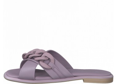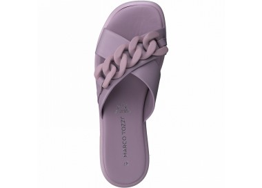 Женские шлепанцы Marco Tozzi. Внешняя и внутренняя отделка – натуральная кожа. Высота каблука – 10 мм. Аксессуар в виде цепочки.