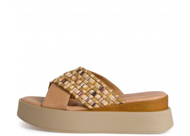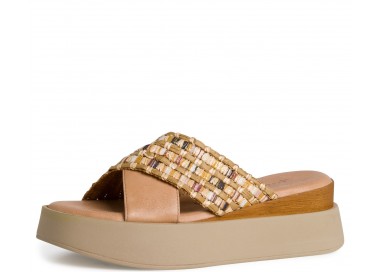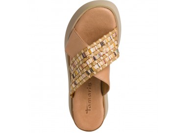 Женские шлепанцы Tamaris на танкетке. Внешняя и внутренняя отделка – натуральная кожа/текстиль. Один ремешок - кожаный, второй с узором из текстиля. Стелька - натуральная кожа. Высота подошвы – 55 мм. Мягкая стелька Touch it уже в кратчайшее время принимает форму стопы и обеспечивает этим оптимальный комфорт.