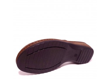 Женская обувь сабо. Внешняя отделка и внутренняя отделка – натуральная кожа. Высота подошвы – 40 мм, прошитые. Резинка позволяет регулировать подъём стопы.
