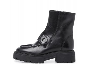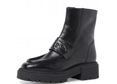Чёрные, кожаные ботинки марки Tamaris, на молнии. Внутренняя отделка - текстиль/синтетика, высота каблука 50 мм. Мягкая стелька Touch-it уже в кратчайшее время принимает форму стопы и обеспечивает оптимальный комфорт во время ходьбы. Подошва обеспечивает лучшую сцепляемость обуви с поверхностью.